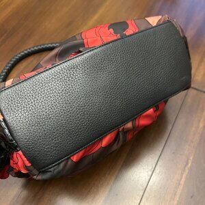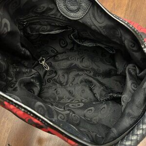 Brighton Jillian Rose Print Nylon Fabric Leather Hobo Bag Red Black
