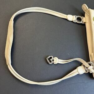 Great, preowned condition. Minor wear to silver heart charm and bottom left seam as shown in photos.