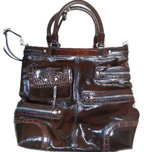 Brighton Kaelan Dark Brown Patent Leather Shoulder Bag