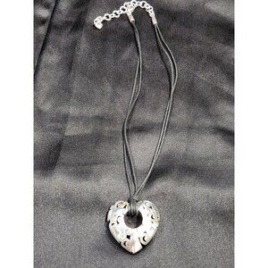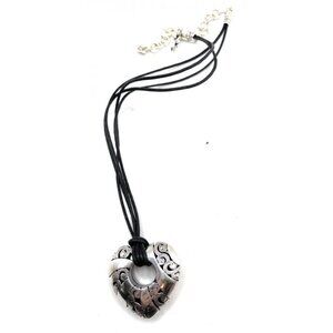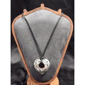 Brighton Kismet Heart Pendant Necklace Silver Scroll on Black Leather Cord