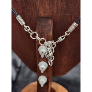 Add artisan charm to your look with this authentic Brighton Kismet Necklace, featuring a dimensional silver-tone heart pendant adorned with intricate scrollwork and set on multi-strand black leather cords. Finished with Brighton’s signature heart logo charm and adjustable chain extender, this versatile piece pairs effortlessly with casual and dressy styles alike.