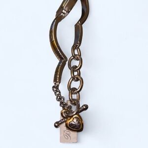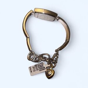 This two-toned timepiece features feminine scrolls and a darling little heart charm 💛, finishing your look with a soft edge. Dressed up for the office or worn casually for date night, you’ll always be on time. Battery needs replacing, any Brighton Collectables store or a local jeweler can do this. Plastic is still on the back of the watch.