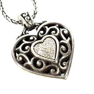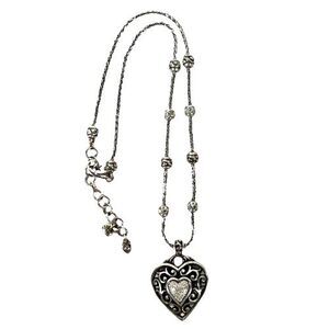 Brighton Large RENO HEART Silver Crystal Puffy Heart Pendant Necklace 18"