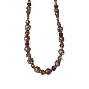 Small silver plated thin spacers & tiny beads throughout the necklace
