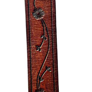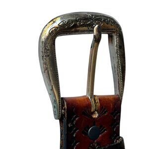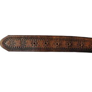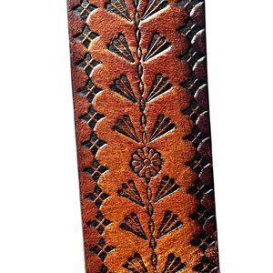 Brighton Leather Belt Floral Embossed Patterns & Silver Tone Buckle 33"-37"