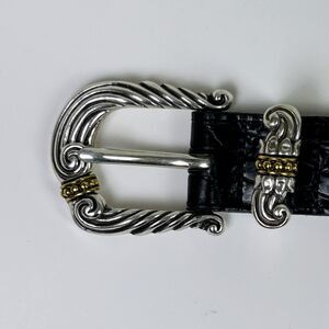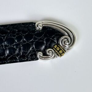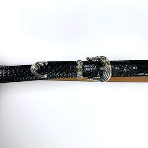 Brighton Leather Black Belt Croc Embossed Western Silver Gold Buckle sz ML 32