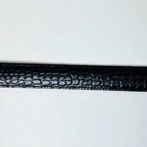 Stunning Brighton belt, made in the USA of top quality leather. This belt features black croc embossed leather with an ornate swirl detailed buckle and end detail. Mixed silver and gold metal made this the perfect accessory to complete any outfit. Excellent, near new condition. Women's ML (medium large) 32, full belt measurement shown in final photo.