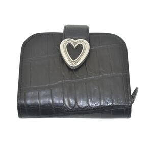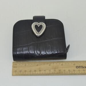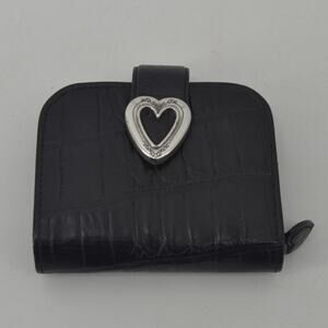 Brighton Leather Black Wallet Heart Accent Croc Embossed