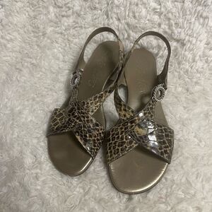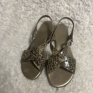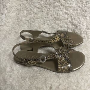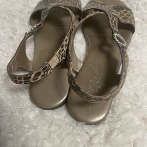 Brighton Leather black & Beige Snake skin Print Coast sling back Sandals Women's Size 9.5. B12