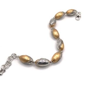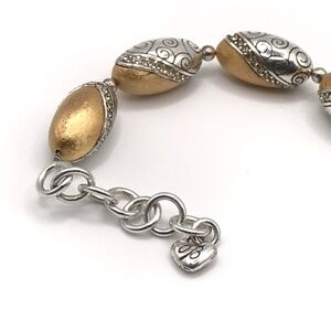 Brighton Link Bead Bracelet Gold & Silver Plate Crystal Italian Style 7.5-8.5"