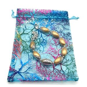 Beautiful. Good pre-owned condition. Shows normal patina on silver plate. Will best fit a wrist 8.5 inch or less. Gift bag is not original. Quality control #0620