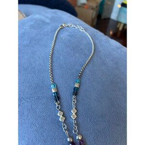 Brighton Long Y-Chain Necklace With Turquoise Teal & Purple Crystals