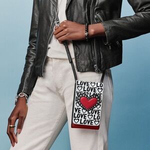 Brighton Look of love phone credit card organizer crossbody leather heart print