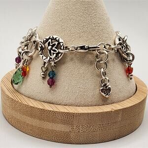 Brighton Lotus Bracelet Colorful Glass Charms Faceted Beads Heart Clasp 7-8”
