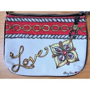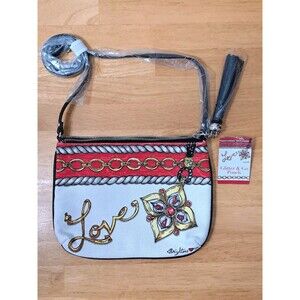 Brighton Love Glitter & Go White Red Gold Canvas with Tassel Crossbody Bag NWT