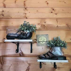 Brighton Love Slide On Strappy Mule Sandals Black Leather Silver Italy Sz 7.5 M
