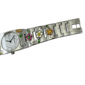Brighton Martinique Wrist Watch Enamel Flowers Quartz Japan Movement Silvertone