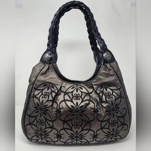 Brighton Masterpiece Florencia Leather embroidered Pewter color Shoulder bag.