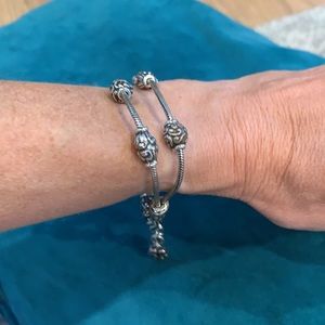 This is a cute matching set of tiered necklace, bracelet and earrings. Crab claw clasp and post earrings. Cute set! Brighton drawstring cloth bag included.