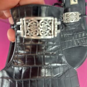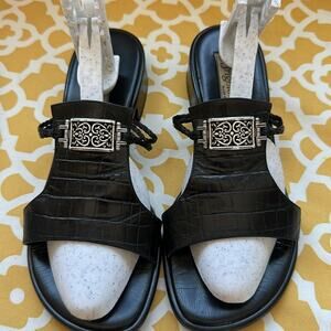 Brighton Mavis Brown Croc Print Leather Italy Slip on Sandals Sz 7.5 video