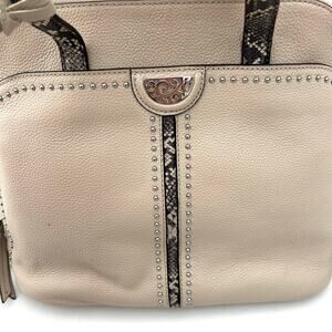 Brighton Miles Convertible Leather Mini Backpack Satchel Beige Snake Charm Y2K