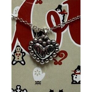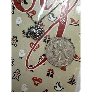 The Brighton Mini Reversible LOVE/BE MINE Heart Pendant Necklace is a charming and versatile accessory perfect for any holiday or special occasion. This silver pendant necklace features a reversible design, allowing you to switch up the style to suit your mood or outfit. The heart-shaped pendant with "LOVE" and "BE MINE" inscriptions adds a touch of romance to any look, making it a thoughtful gift or a lovely treat for yourself. Brand new in original packaging. Cups from a smoke free home. Retail cost $40.