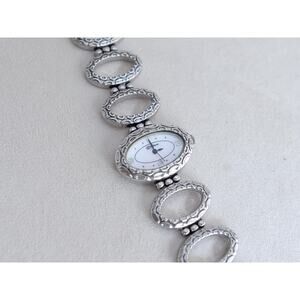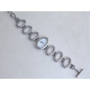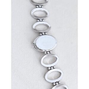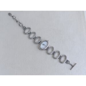 Brighton Miramar Watch Silver Plated Textured Oval Links Abalone Shell Dial 7-8