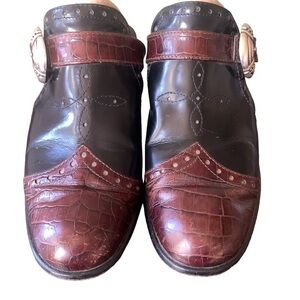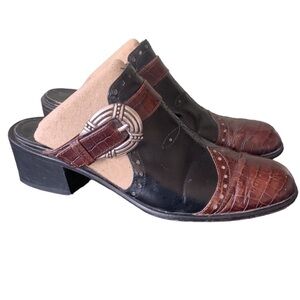 Brighton Mules Leather Cap Toe Faux Buckle Brown Black Silver Western Size 7.5 Narrow