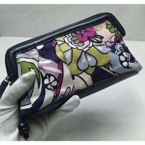 Brighton Multicolor Canvas Leather Double Zipper Credit Card ID Window Wallet