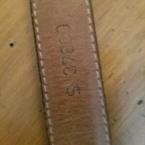 This belt is a Brighton Museum Collection leather belt. The inside is stamped with the following information: "Decorative golden coins, particularly fashionable in teh second and third centuries, were often made into rings and awarded for acts of distinction. Inspired by the Greco-Roman tradition, we've designed our own elegant silver settings to encase these golden treasures."