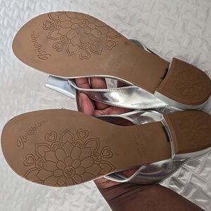 Brighton NELL Silver Sandals with Metallic Thong Strap And Bow Detail SUMMER