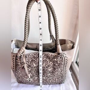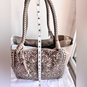 NEW WITH TAGS BRIGHTON FERRARA NOVA "RAFAELA" Beachwood 3D Studded Soft Leather Front MedallionTote Bag