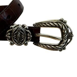 Brighton Narrow Reptile Brown Leather Belt with Silver Hardware