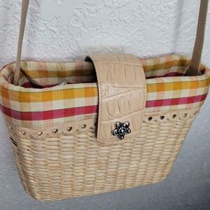 Brighton Natural Straw Basket Leather Scallop Heart Plaid Croc Crossbody Purse