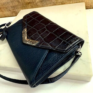 Brighton Navy Mingle Leather Envelope Organizer Crossbody