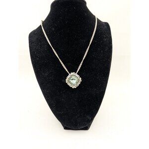 Brighton Necklace Danube Blue Faceted Pendant Crystal Silver Double Chain. Pre-owned in good overall condition with a noted chip on the crystal (top). For more details please study all pictures.
