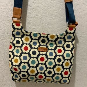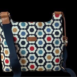 Brighton Newberry Crossbody Bag Flowers Discontinued Adjustable Strap Blue ivory