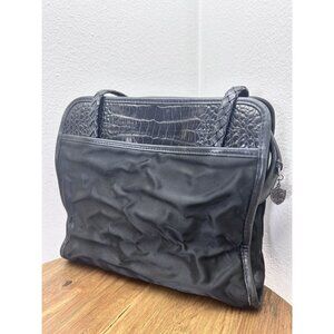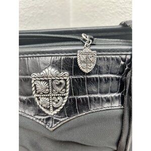 Features: Black nylon satchel has woven leather handles that are the perfect length to carry on your arm or on your shoulder. Brighton Collection Authenticity Branded No. 792596