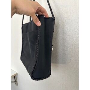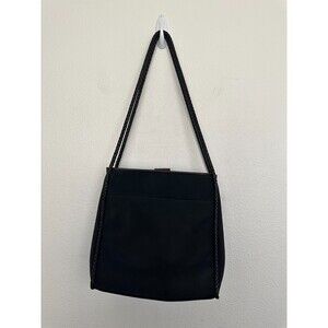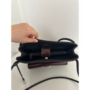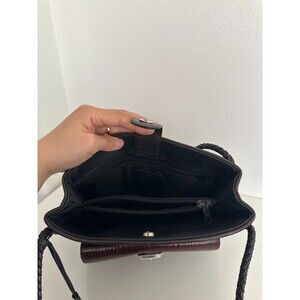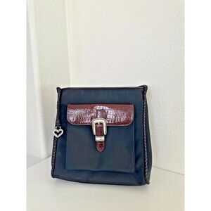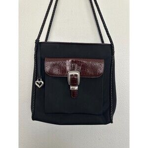 Brighton Nylon Shoulder Bag Braided Strap Croc Embossed Black Silver Western.