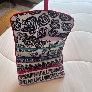 Really cute! Brighton fabric is Love Dove ❤️ jewelry roll-up travel bag, has ties and zippers for security and space-saving