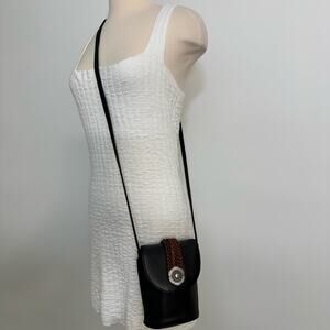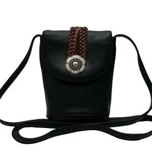 Brighton One World Leather Small Bucket Bag Crossbody Mini Black Brown Woven