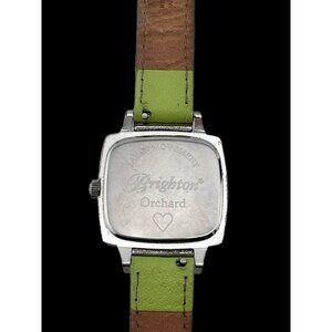 The Brighton Orchard Wrist Watch features a stylish silver case with a vibrant green leather strap, making it a classy and versatile accessory for any outfit. With a matching green dial and bezel, this watch exudes a trendy and fashionable flair. The combination of high-quality materials and the reputable Brighton brand ensures both durability and sophistication, making this timepiece a must-have for watch enthusiasts.