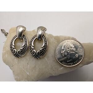 Brighton Oval Silver Tone Scroll Detail Post Earrings 1 Inch