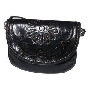 Brighton Patent Leather Crossbody Bag Flap over Purse Sunflower Details