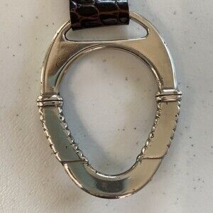 Brighton 90's patent mod croc embossed brown chain belt oval silver hook buckle
