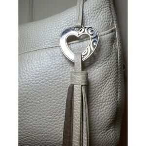 Beautiful soft pearl (cream) colored textured leather Brighton shoulder bag from the Barbados Collection. Features a multi-tone braided leather strap and Brighton’s signature silver-tone hardware. Classic hobo silhouette with functional pocket organization and timeless designer appeal.