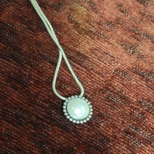 Brighton Pearl Pendant Snak Chain Necklace Silver Plated Elegant Luxury Gift 18"