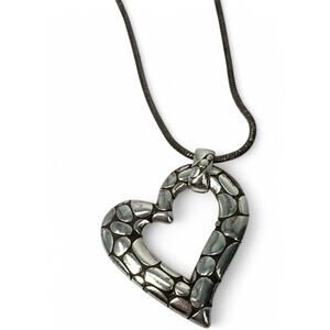 Brighton Pebble Heart Necklace Silver Pendant with 9" inch Chain