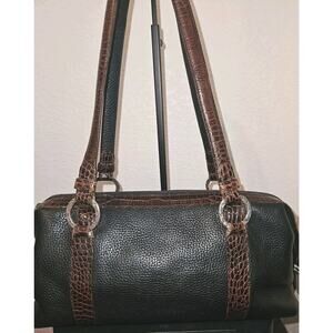 Brighton Pebbled Leather Shoulder Bag, Black Brown Croc Embossed Trim 14x8x4