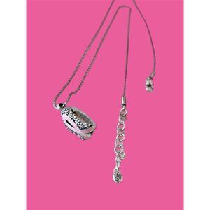 Brighton Pink Ribbon Lanyard Necklace 36" Silver Crystal Pendant Badge Holder